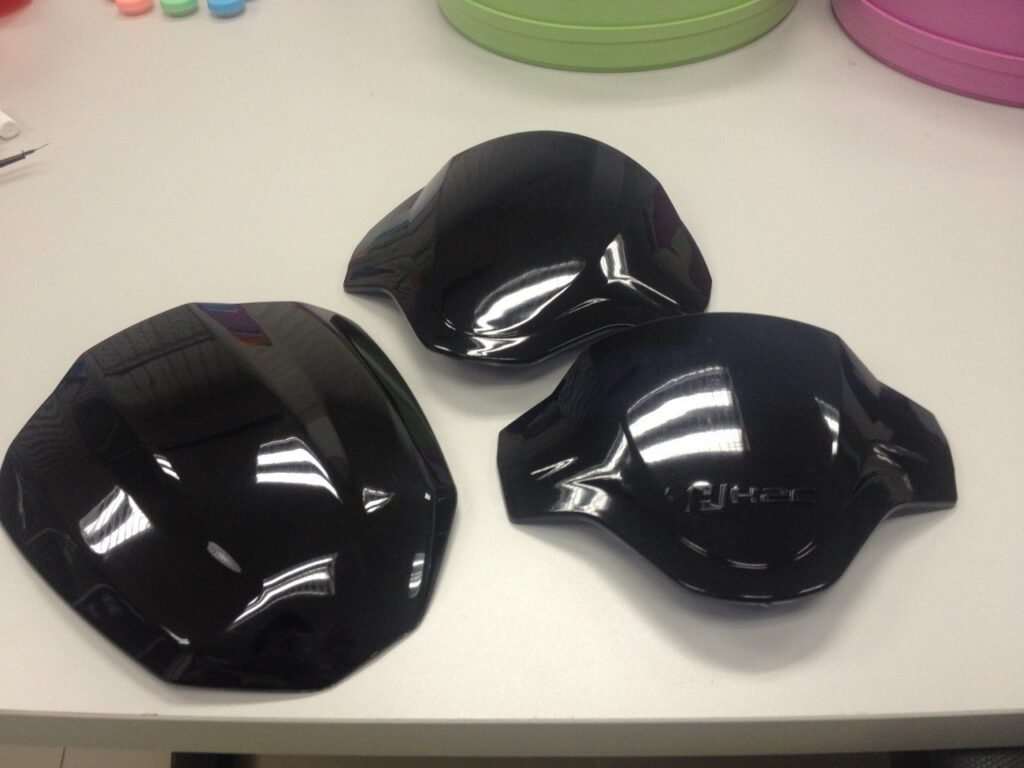 ABS (acrylonitrile-butadiene-styrene) เช่น แผ่นหลังป้ายทะเบียน ชิ้นงานสำหรับชุบโครเมียม ฯลฯ