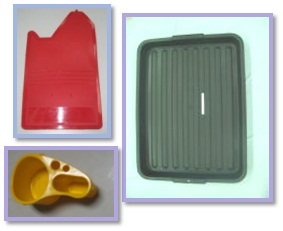 โพลีเอททีลีน (Polyethylene) ย่อว่า PE ตัวอย่างชิ้นงาน เช่น ถาดแข็ง แผ่นยางกันโคลน ที่วางแก้วน้ำ ฯลฯ