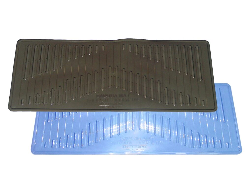 โพลีไวนีล คลอไรด์ (Polyvinylchloride or PVC) ตัวอย่างชิ้นงาน เช่น ผ้ายาง PVC ปูพื้นรถยนต์, กันกระแทกประตูรถยนต์ ฯลฯ